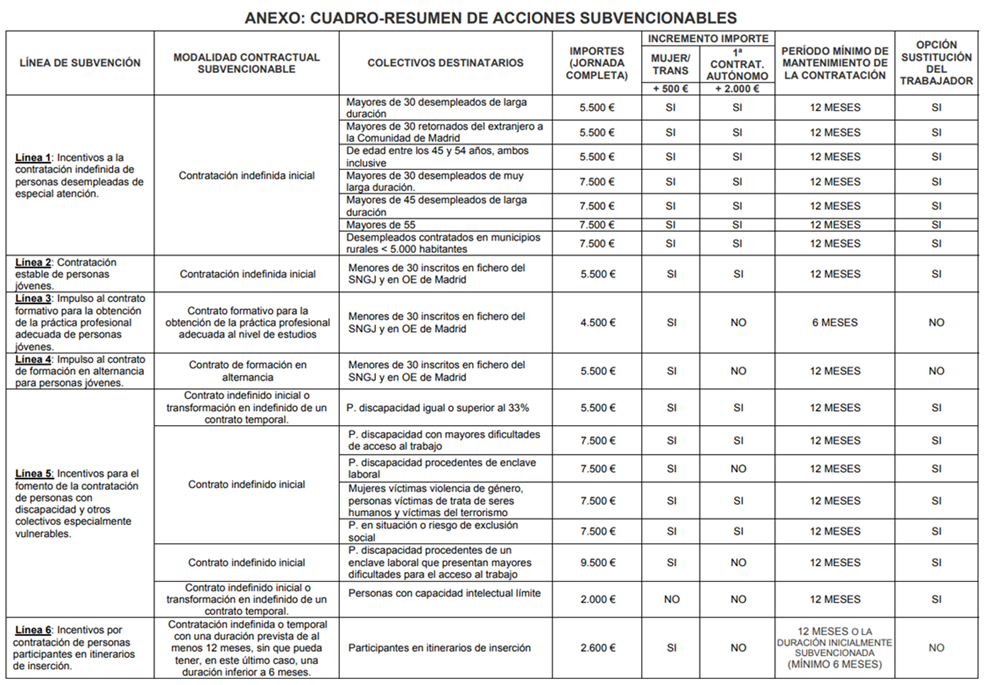 Nota: Únicamente serán subvencionables un máximo de diez contrataciones indefinidas por beneficiario realizadas en cada año natural.